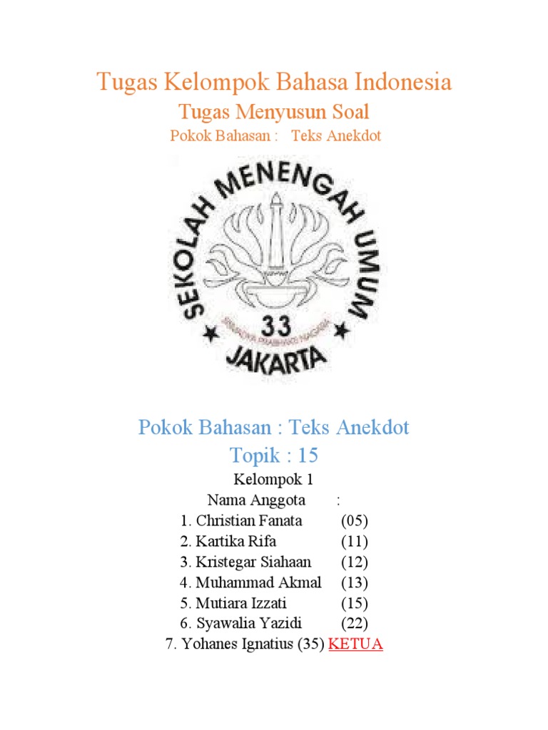 2 from Maybe you would like to learn more about one of these? Susunlah anekdot berikut ini sesuai dengan strukturnya. Check spelling or type a new query. We did not find results for: