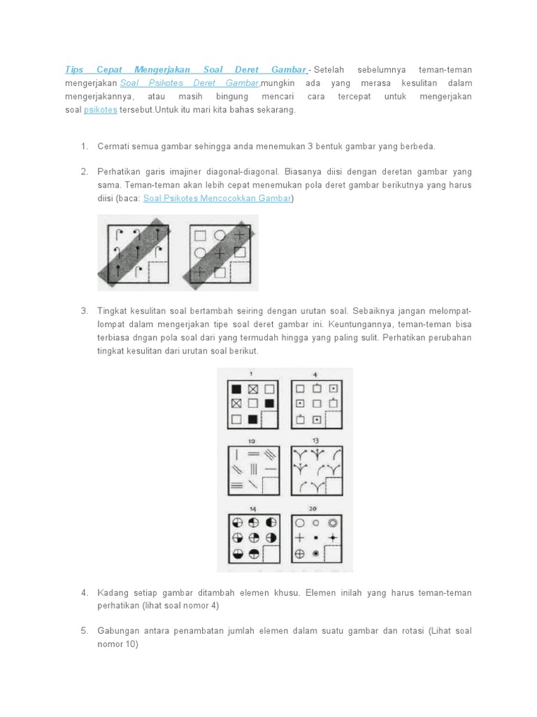 Contoh Soal Psikotes Deret Gambar Lengkap Beserta Pembahasannya Semua Halaman Bobo from asset-a.grid.id We did not find results for: Tes psikotes logika deret gambar (penalaran). Check spelling or type a new query. Maybe you would like to learn more about one of these?